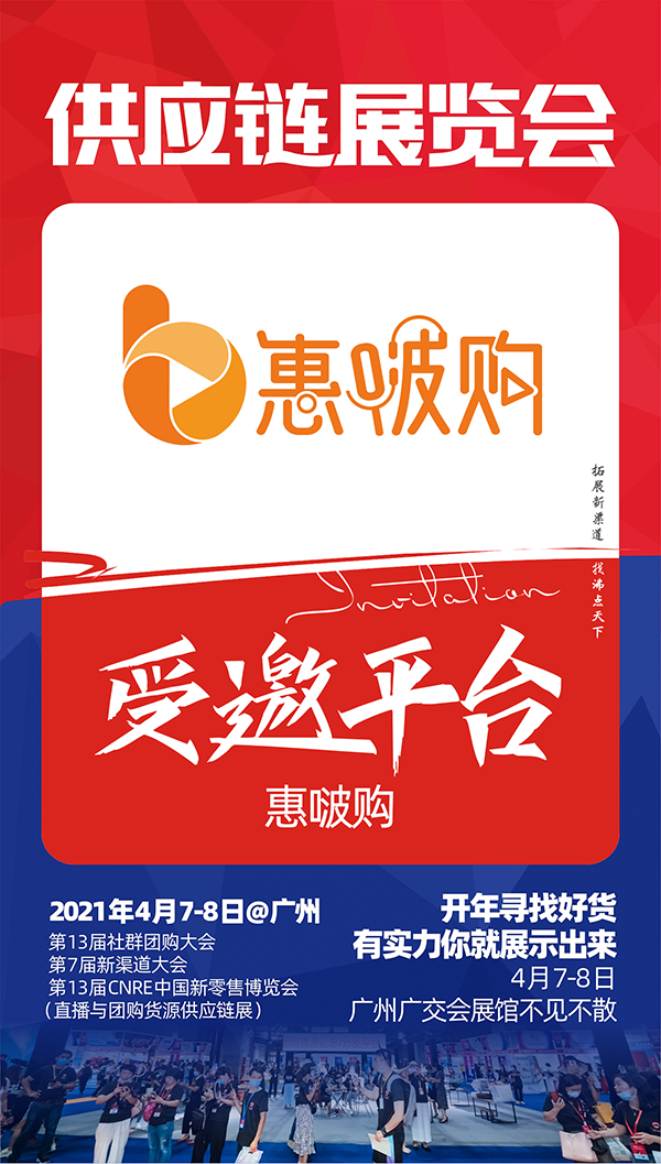 2021供应链展览会于4月7-8日,在广州广交会馆B区举办,此次大会由沸点天下、沸点会展、4458货源网联合举办。分为春季爆品展区、零食食品区、服装鞋包区、家居百货区、孕婴童产品区、小家电展区、跨境商品展区六大展区,设置1000个展位,预计有5000款产品现场展示对接。惠啵购惠啵购入驻平台选品对接会,诚邀供货商朋友洽谈合作。