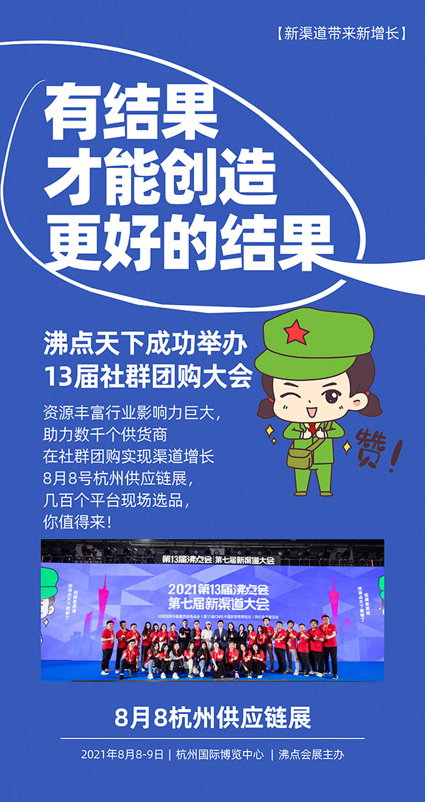 沸点天下是一家专注打造新渠道生态圈的企业,创办了社群团购大会,社群团购节,社群团购供应链展,新渠道大会等线下活动。