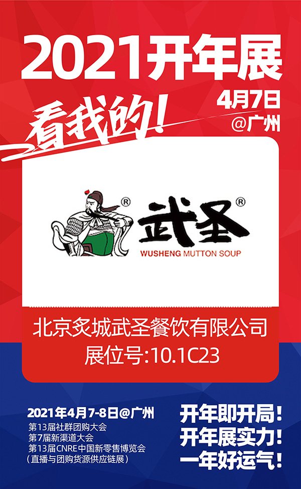 由沸点天下、沸点会展、4458货源网联合举办的“2021第七届新渠道大会(社群与直播供应链展)、第13届CNRE中国新零售博览会”将于2021年4月7日在广州举办,北京炙城武圣餐饮有限公司(以下简称:武圣)受邀参展本次展会。