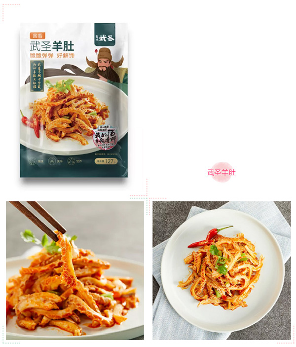 选自每只羊只此一块的金钱肚,拒绝火碱泡发等不健康处理方式,经过清洗,白醋浸泡等一系列的方式,保留羊肚鲜香的本味,脆嫩弹牙的口感。食用简单方便:开袋切丝,淋入料汁即可享用。