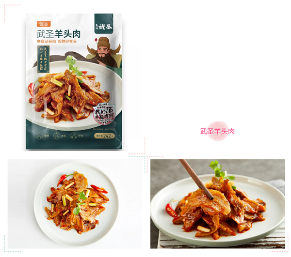 ①武圣精选贴骨羊头肉,经过清洗、除杂、去腥、慢卤等工艺