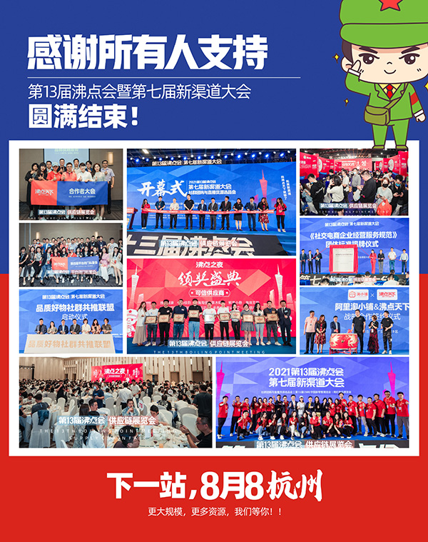 下一届一件代发货源展暨新渠道选品对接会将于8月8-9日在杭州举办!还是由沸点会展主办,万团会和4458货源网协办。欢迎更多的团购平台、直播机构、供应链、品牌方、工厂方、云仓等积极报名参加!