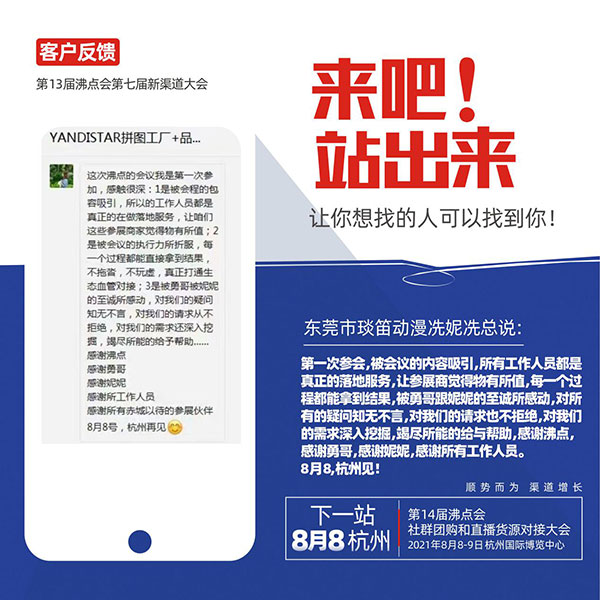 沸点天下是一家专注打造新渠道生态圈的企业,创办了社群团购大会,社群团购节,社群团购供应链展,新渠道大会等线下活动。