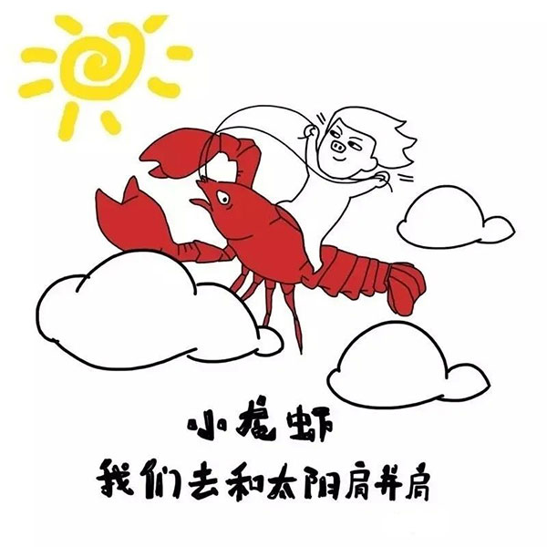 随着“小龙虾我们走”的这套表情包大热,小龙虾也被众多神通广大的网友拿来调侃或是发挥更多的奇思妙想。比如说小龙虾我们走,一起去找个女盆友。